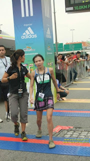 This was an out-and-back along the New Pantai Expressway (NPE) starting and ending at Sunway Pyramid. There wasn’t really much of a scenery and it can get mind boggling running down an endless straight road with no end in sight. At least it felt that way for me. There were (I think) 4 upslopes on the 10km route, not too sure about the 16.8km category but everyone sure did not miss the last one – 800m to go and bam…it’s in your face. To add salt to the wound, they had countdown distance marker of 800m at the start of this slope!